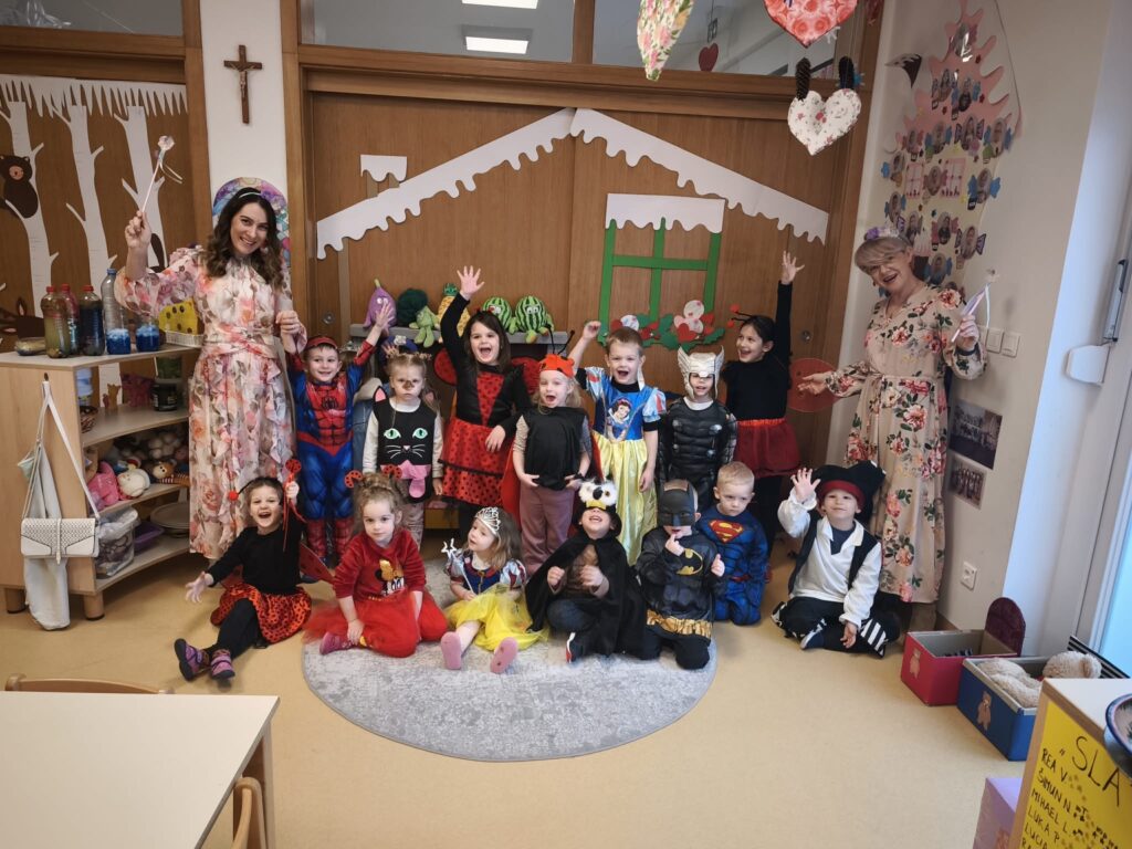 Mjesec smo započeli u veselom tonu uz temu “Stiglo vrijeme karnevala”. Cilj nam je bio omogućiti djeci uživljavanje u različite uloge, potičući njihovu maštu i stvarajući veselo ozračje. Veselje se nastavilo kroz temu: “Karnevalska ljubav”, kojom smo povezali karneval i Valentinovo. Sredinom mjeseca ušli smo u mirnije, ali važno razdoblje uz temu “Ulazimo u korizmu”….